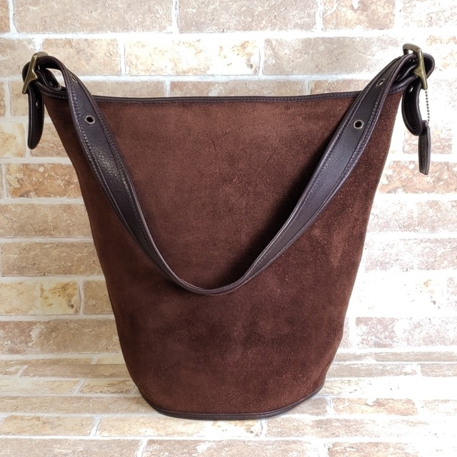 ・コーチ人気のバケツ型、ビンテージ/ヴィンテージのコーチ、オールドコーチの斜め掛けOKなバックスキン ダッフルショルダーバッグです。定番のダッフルショルダーを内装を表にしたレアデザインです。 ユニセックスで使っていただけます。 ※他にもオールドコーチを沢山販売しております。 野球グローブに使われるほどの頑丈なグローブレザーを使用しており、通常のレザーよりもかなり強いので、とっても長く使用して頂けますよ。 ・カラー ダークブラウン(画像参照) ・素材 スエードレザー 牛革 ・製造国 USA製 ・付属品 無し ・サイズ 横幅 約21.0cm(底面) 約38.0cm(上部最大幅) 縦幅 約34.5cm(中央部) マチ 約22.0cm(底面) ショルダー 約47.0~76.0cm(8穴) ・収納 内装 ポケット×1 ・商品コンディション 外装スエードレザーに線状の薄い圧迫痕、スレ、スレによる毛羽立ちが全体にあります。(画像参照) 外装レザーにスレ、スレによる軽い退色が全体所々にあります。特にフチやショルダーフチにあります。(画像参照) ショルダーのハトメ金具に緑青があります。ある程度取り除いています。(画像参照) 内装のポケットに白いスタンプが押されています。(画像参照) 金具にスレ、変色があります。(画像参照) その他使用感はありますが、大きなダメージのないまだまだご愛用いただける良いコンディションです。(画像参照) ヴィンテージ商品ですが、経年による状態変化がなく、年数経過有る商品の中でも、良いレベルのコンディションです。ヴィンテージ商品にご理解のある方のご購入お願いいたします。 M1593 ---------------------------------------------------------------- ☆配送・日時指定について☆ ※当方都合上、日曜日・祝日・年末年始の「配送手配」「ご質問、取引メッセージの返答」等が出来ません。 ※東京都からの発送になります。日時指定は関東近郊はご購入日の翌々日から、四国地方・中国地方・九州地方・青森県・北海道は3日後、沖縄県は4日後からの指定でお願いいたします。 ※配送は佐川急便にて行いますが、離島・沖縄県はゆうパックにての配送手配になります。 ↓詳細はこちら https://seri.base.shop/blog/2020/08/25/102938 ご了承お願いいたします。