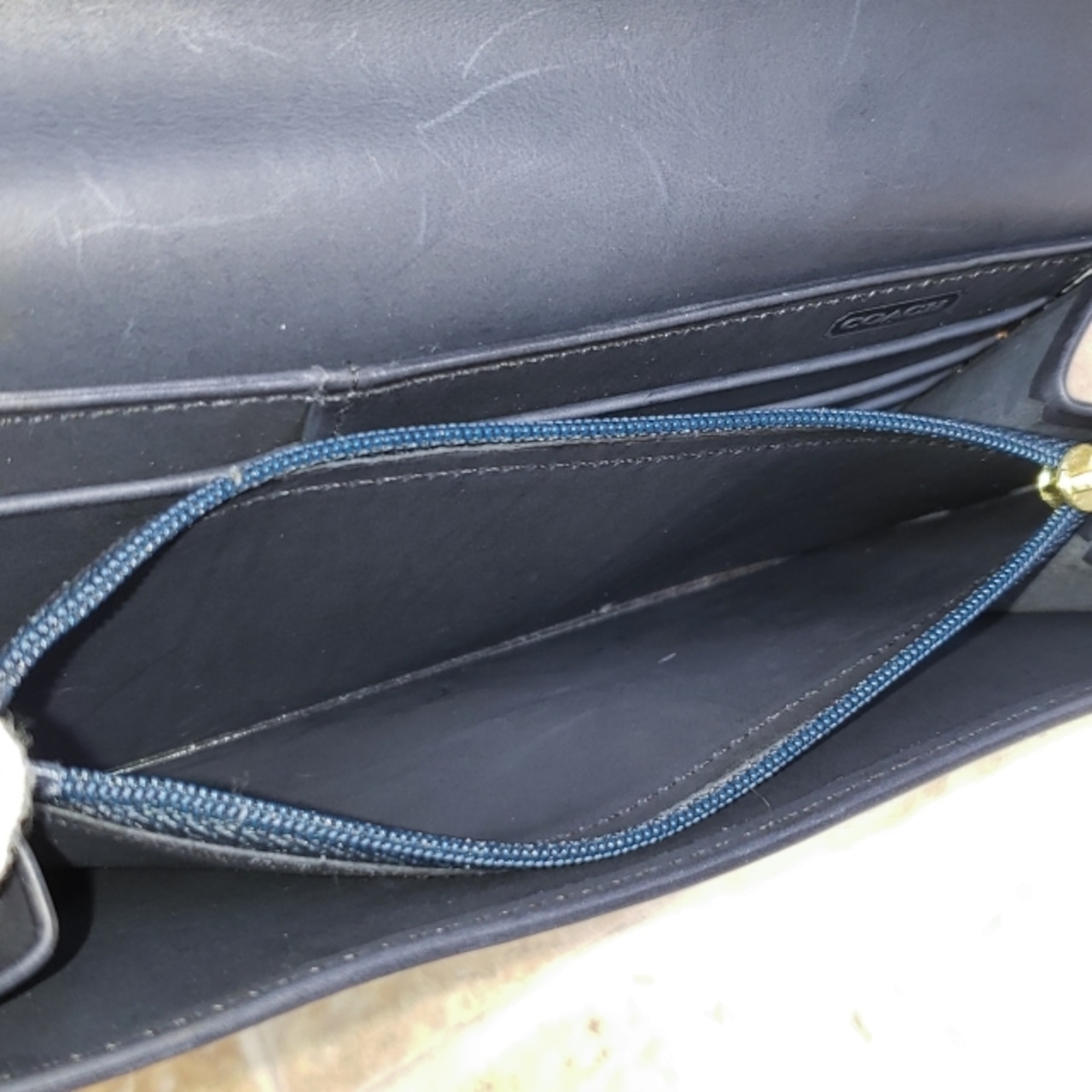 未使用 オールドコーチ ☆ レザー フラップ 長財布 ネイビー 財布 小銭室有 ユニセックス COACH