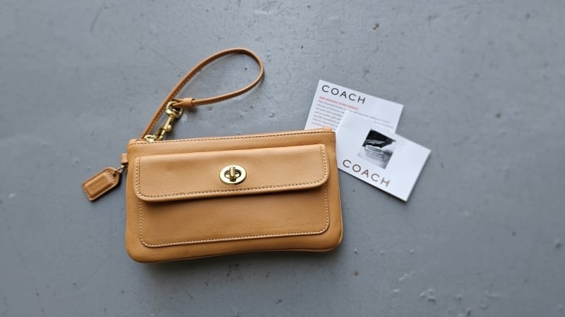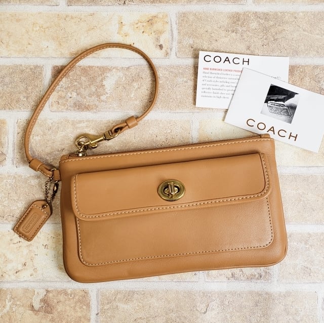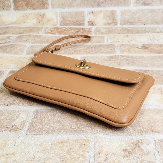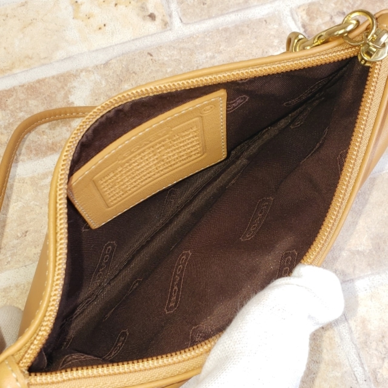 美品 オールドコーチ ☆ ターンロック レザー ストラップ付 ポーチ マルチケース ベージュ マチ無し