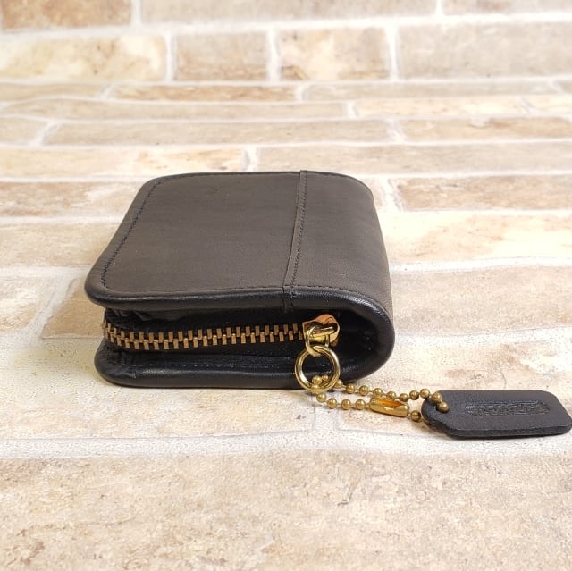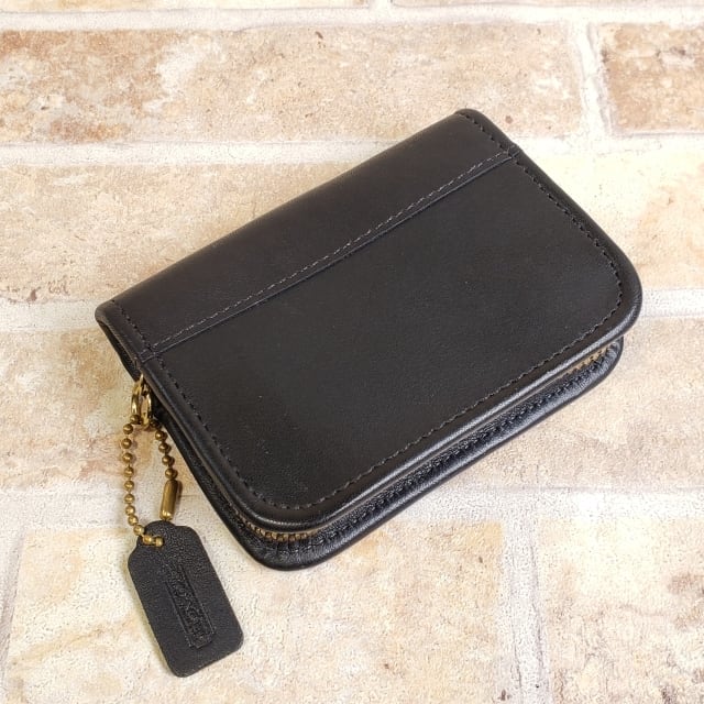 オールドコーチ ☆ レザー ラウンドジッパー 小銭入れ 財布 ブラック コインケース ユニセックス COACH コーチ