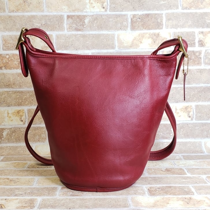 オールドコーチ ☆ USA製 レザー ダッフル ショルダーバッグ バケツ型 中型 レッド ユニセックス