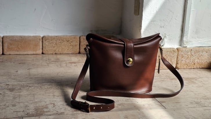 美品 オールドコーチ ☆USA製 レザー ショルダーバッグ ダークブラウン 自立 ドイツホック ユニセックス