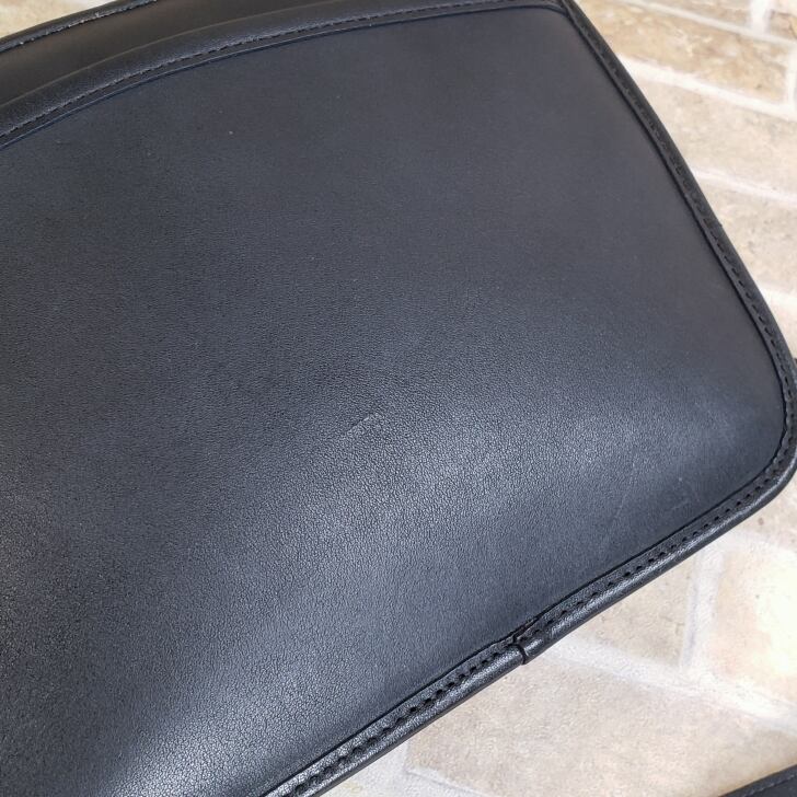 外装レザー全体に薄い線状のスレ、軽いスレがあります。スレによる退色がフチにあります。(画像参照)