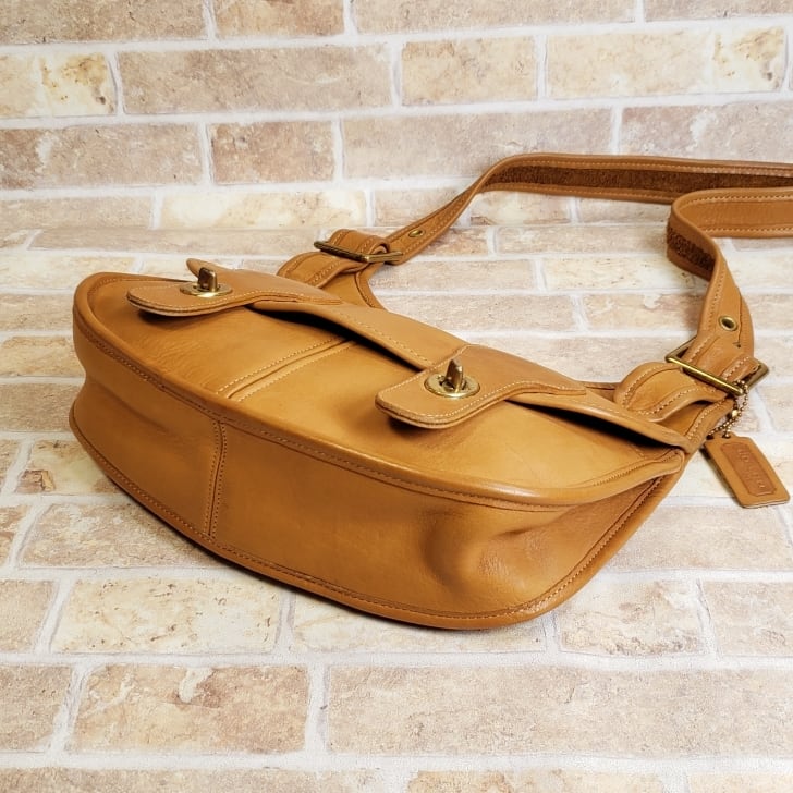 オールドコーチ ☆ NY刻印 USA製 ターンロック レザー ショルダーバッグ ベージュ