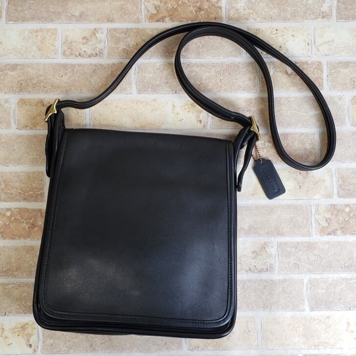 オールドコーチ ☆ USA製 レザー ショルダーバッグ フラップ ブラック