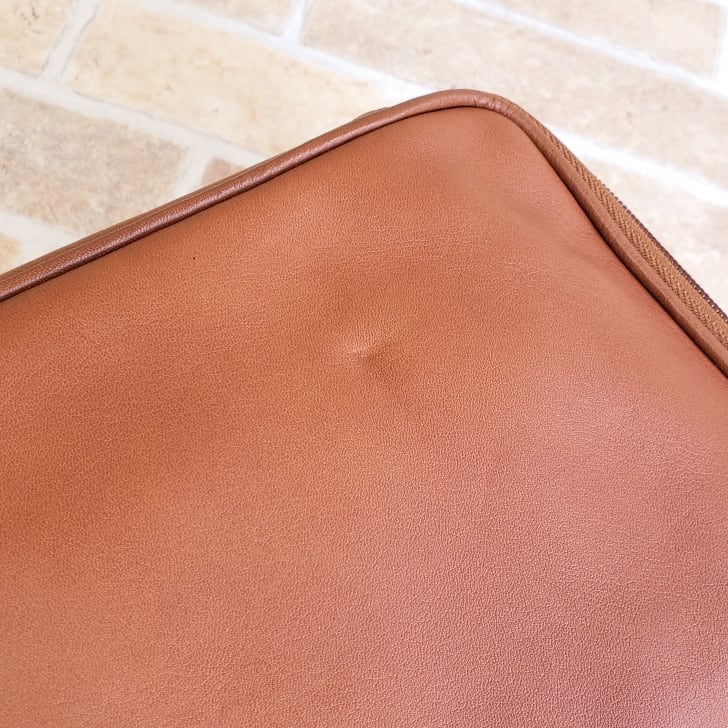 外装レザー蓋部分の右上あたりに圧迫痕があります。(画像参照)