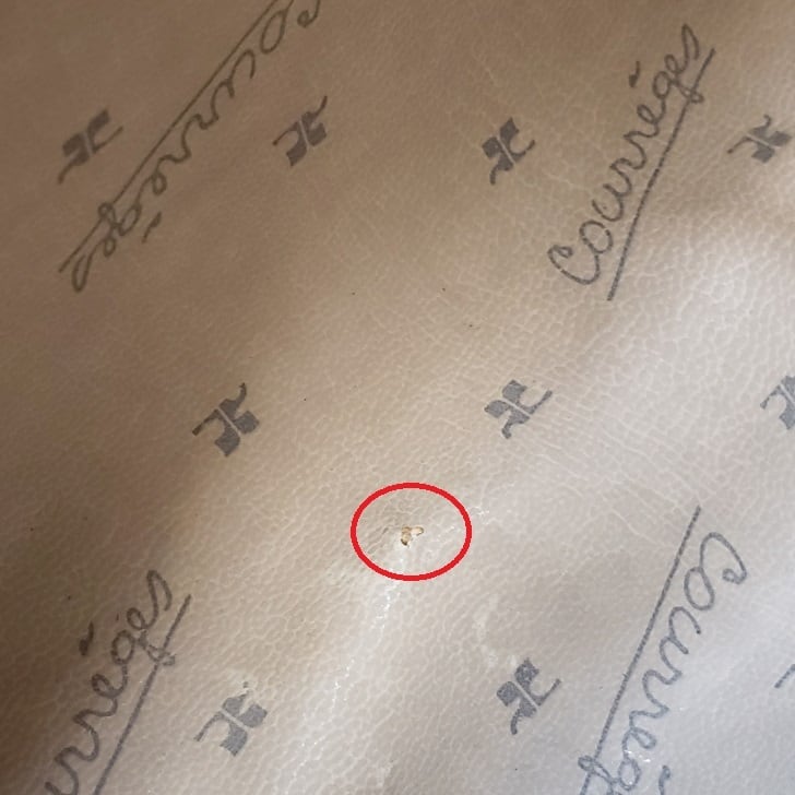 内装レザー底面にかご部分の一部先端があたって点状の穴があいています。※先端が出ている部分が若干鋭利になっているため注意が必要です。