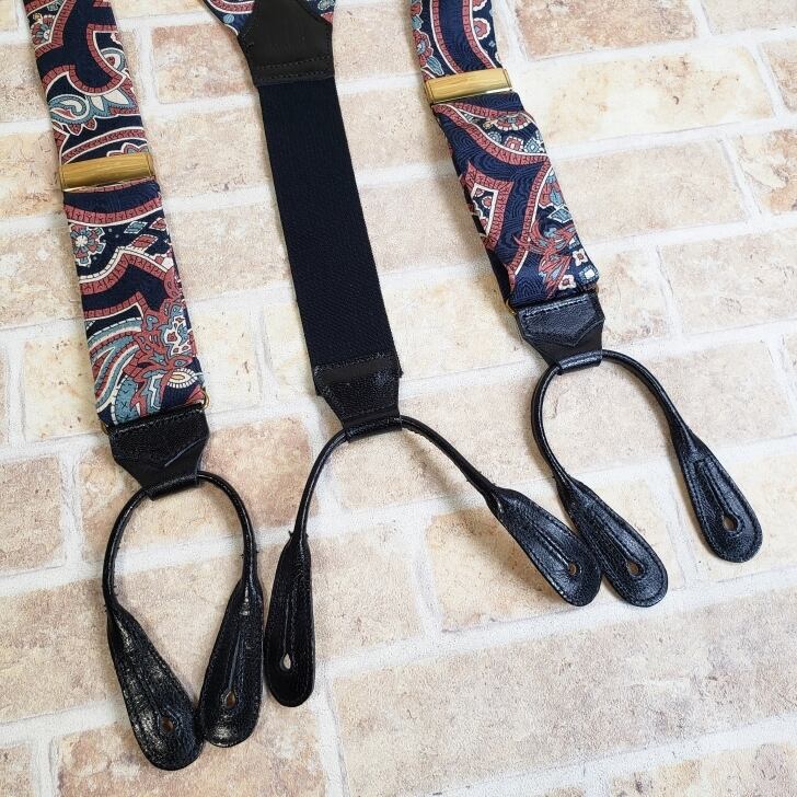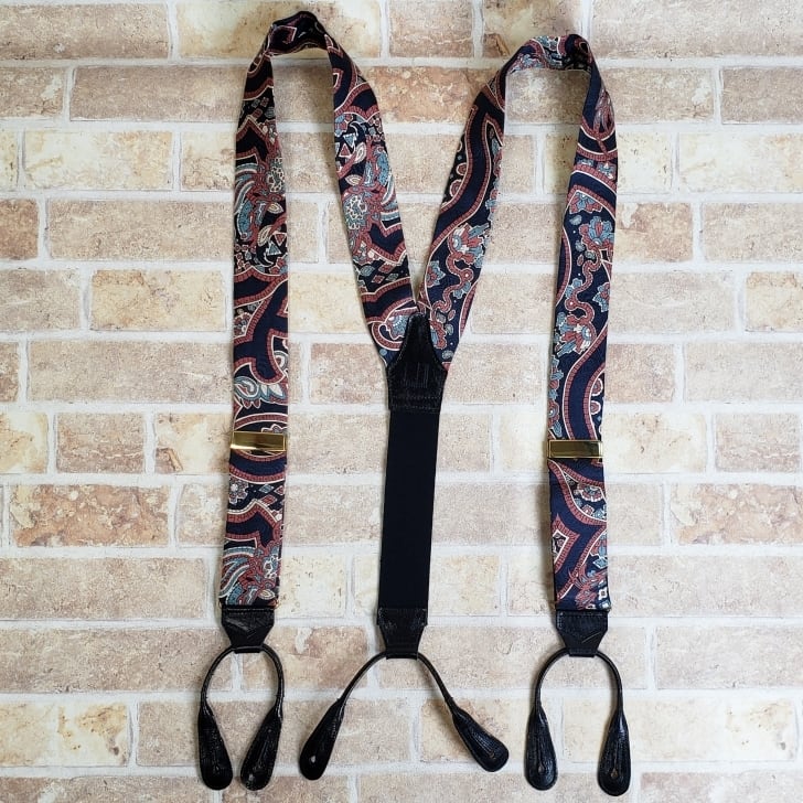 ・ヴィンテージ 総柄の Y字型 ボタン式 サスペンダー です。