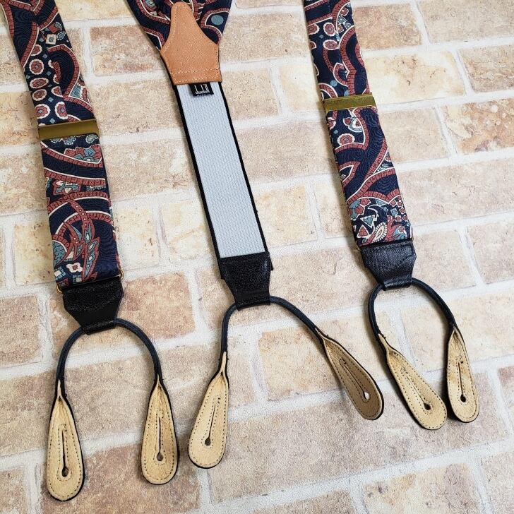 ダンヒル dunhill ☆ ヴィンテージ 総柄 Y型 ボタン式 サスペンダー イタリア製