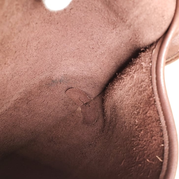 外装レザー全体にスレ、スレによる退色、薄い線状のスレが所々にあります。特にフチに多くあります。(画像参照)