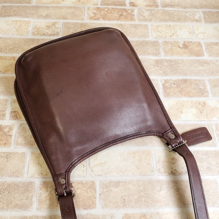 オールドコーチ ☆ USA製 レザー 薄マチ ショルダーバッグ ダークブラウン ユニセックス コーチ COACH ヴィンテージ