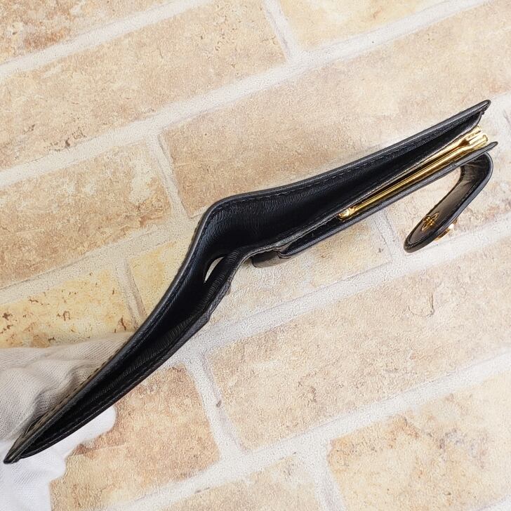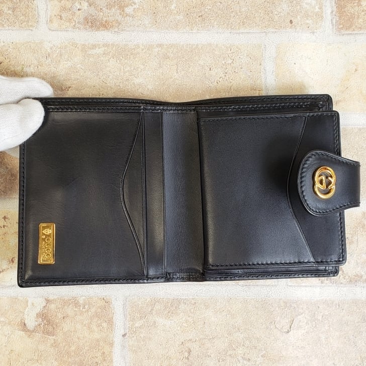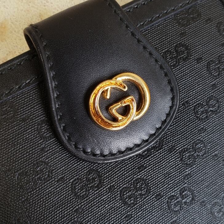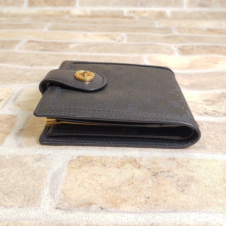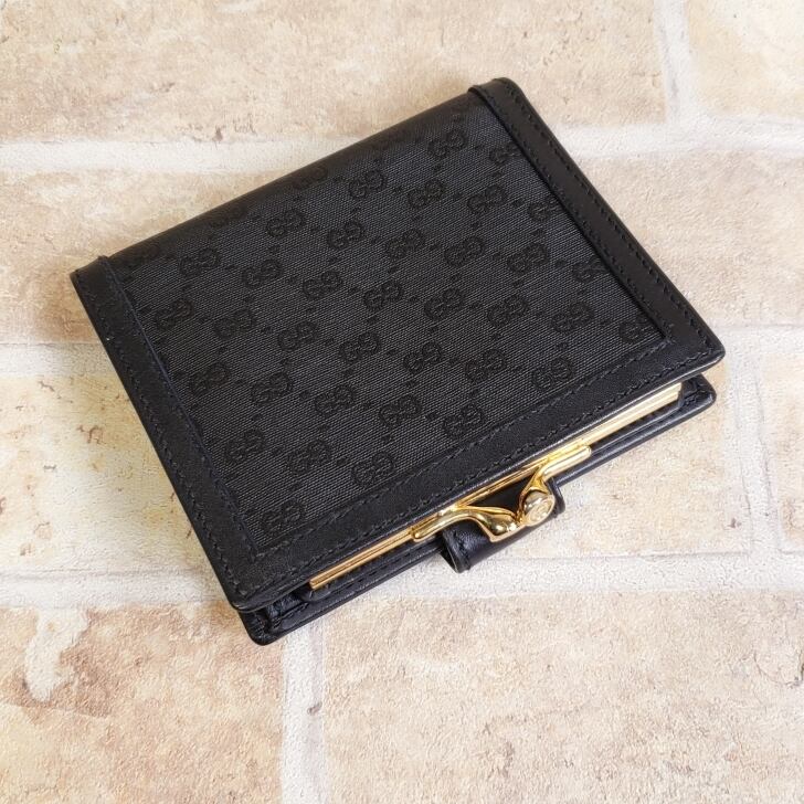 美品 オールドグッチ ☆ ヴィンテージ GG柄キャンバス レザー 折財布 イタリア製 ブラック PVCキャンバス GUCCI グッチ がま口 財布