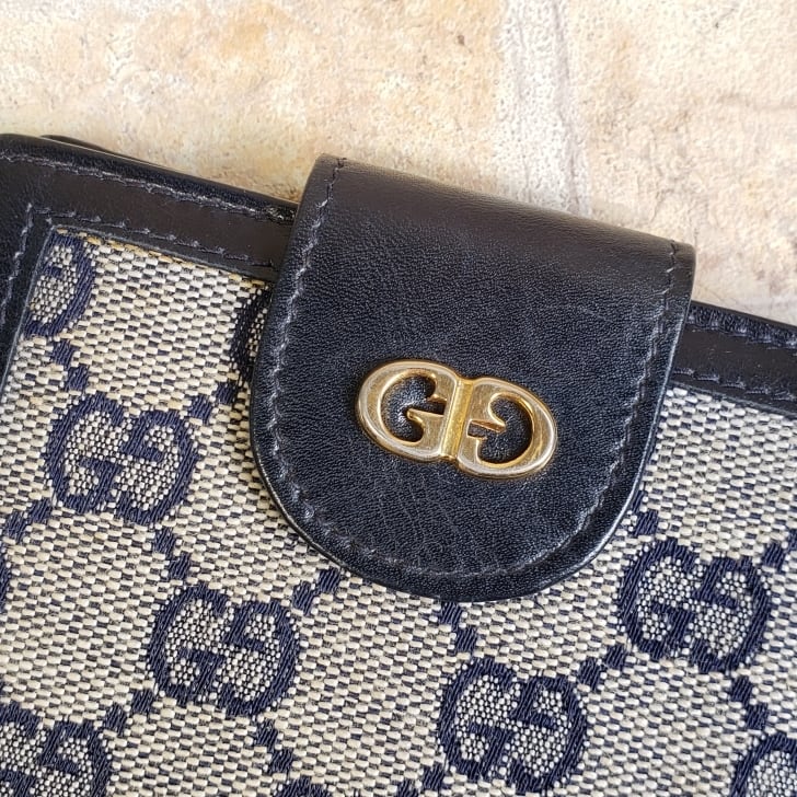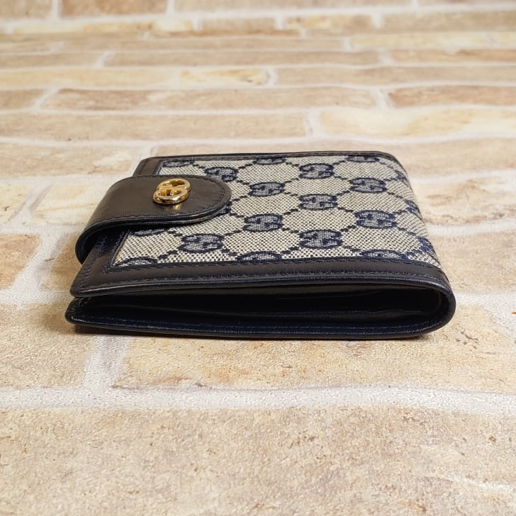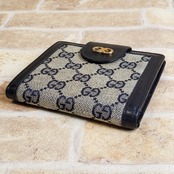 オールドグッチ ☆ ヴィンテージ GGキャンバス レザー 折財布 イタリア製 グレー系 ネイビー系 GUCCI グッチ 財布