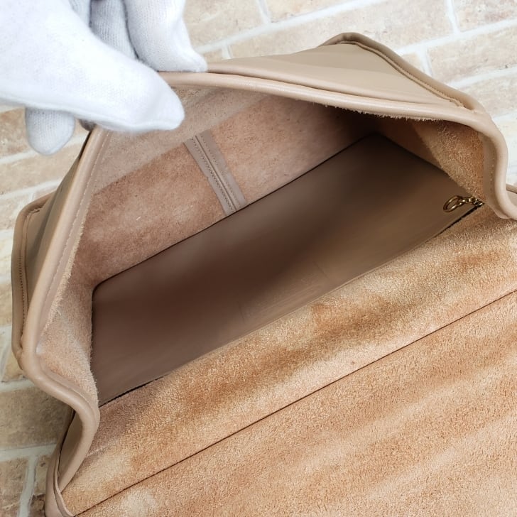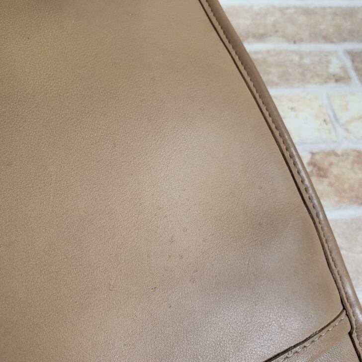 外装レザーのフチにスレ、スレによる退色、薄いスレ汚れがあります。(画像参照)