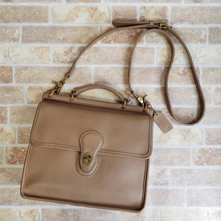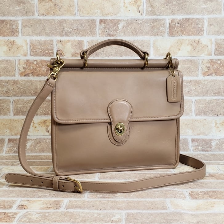 ・まろやかなライトベージュ系のカラーが珍しい!人気のターンロックがポイントのビンテージ/ヴィンテージのコーチ、オールドコーチの斜め掛けOKな ウィリスデザイン 2WAYショルダーバッグです。