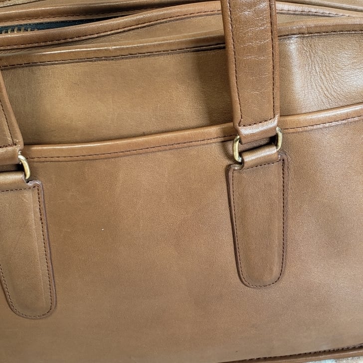 外装レザー全体にスレ、スレによる退色、日焼け、日焼けによる色むらがあります。ハンドルに大きく色ムラがあります。(画像参照)