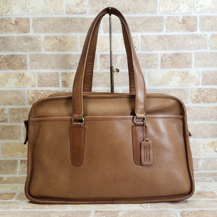 オールドコーチ ☆NY刻印 USA製 レザー 底鋲付き 横長デザイントートバッグ ハンドバッグ ライトブラウン系