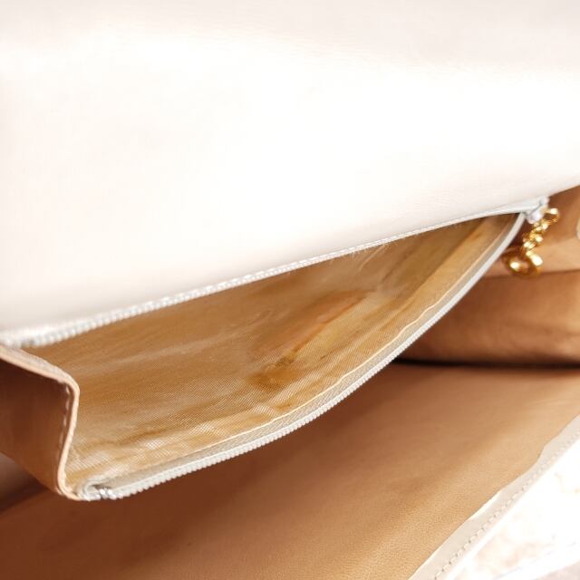 外装両側面アイボリーレザーの底面付近に所々薄い黒系のシミがあります。(画像参照)他のアイボリーレザー部分に所々に軽いシミ汚れ・小さな汚れがあります。(画像参照)