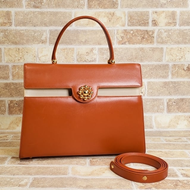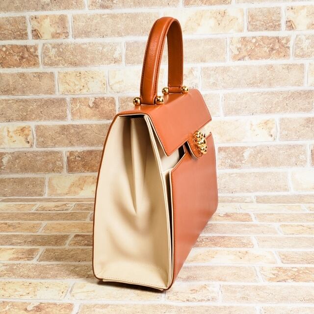 パロマピカソ ☆ ヴィンテージ バイカラー 2WAY ハンドバッグ イタリア製 テラコッタ アイボリー ショルダーバッグ 自立OK 総革 PalomaPicasso