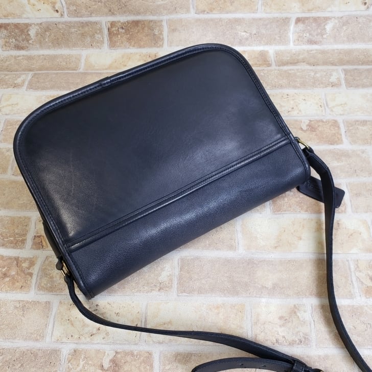 オールドコーチ ☆ USA製 ターンロック レザー ショルダーバッグ ネイビー ユニセックス COACH コーチ