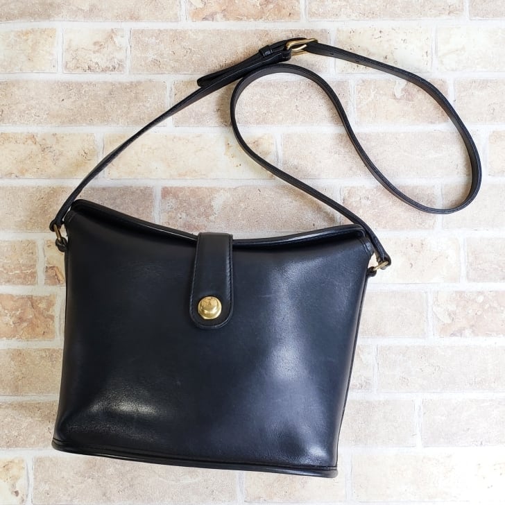 オールドコーチ ☆ USA製 レザー ショルダーバッグ ブラック 自立 ドイツホック ユニセックス