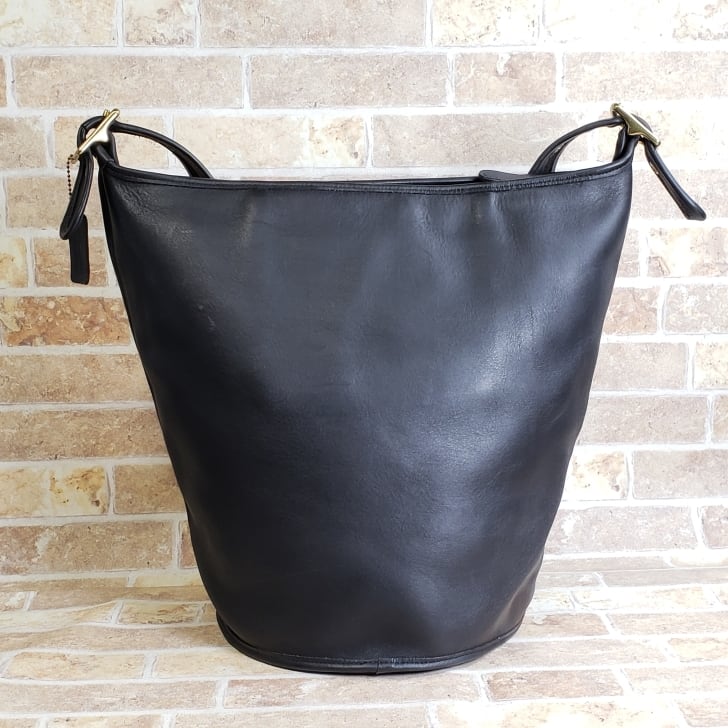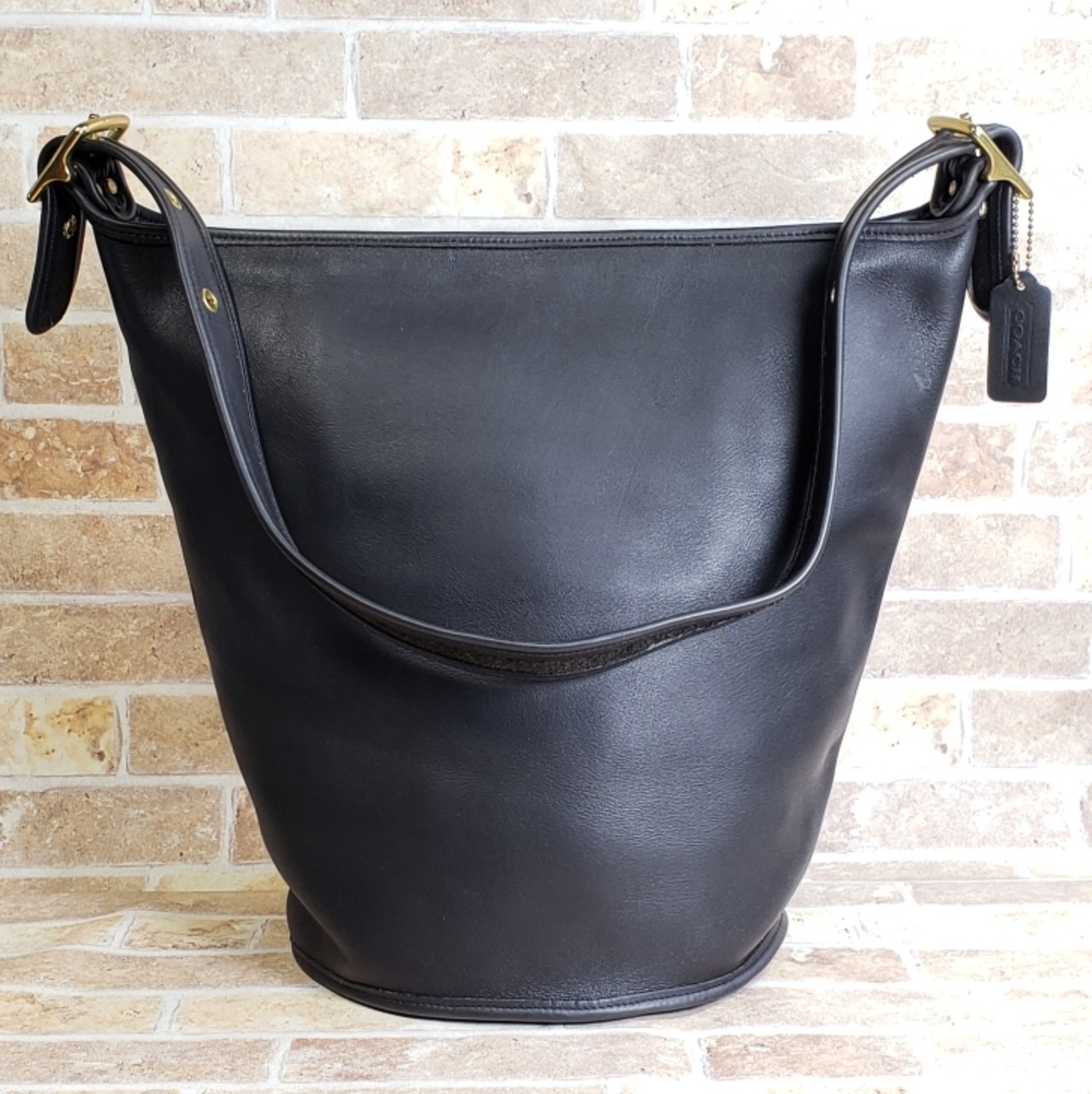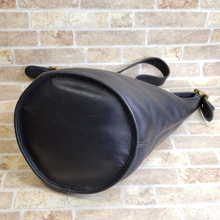 美品 オールドコーチ ☆ USA製 レザー ダッフル ショルダーバッグ A4OK バケツ型 ブラック ユニセックス