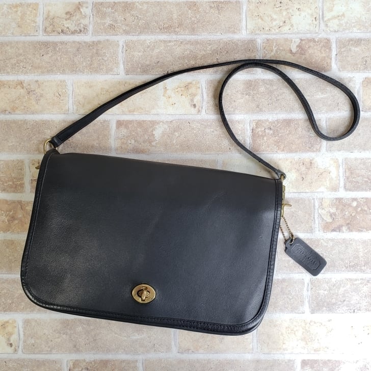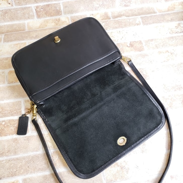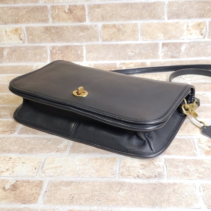 オールドコーチ ☆ NY刻印 80's USA製 レザー ターンロック ショルダーバッグ ブラック クラッチ