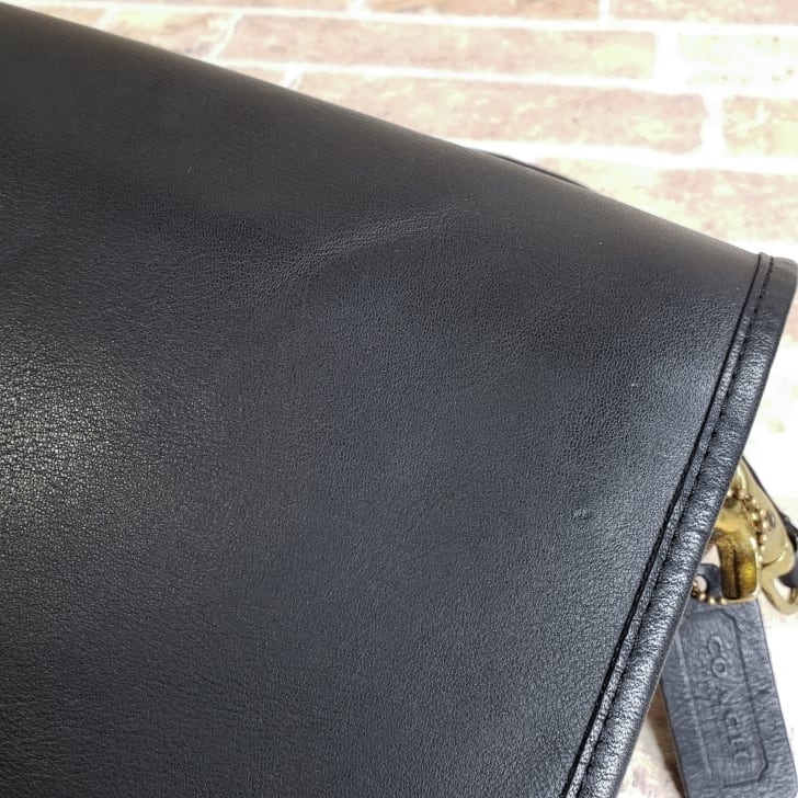 フラップの左側の上部にショルダーベルトがあたってできた型崩れがあります。(画像参照)
