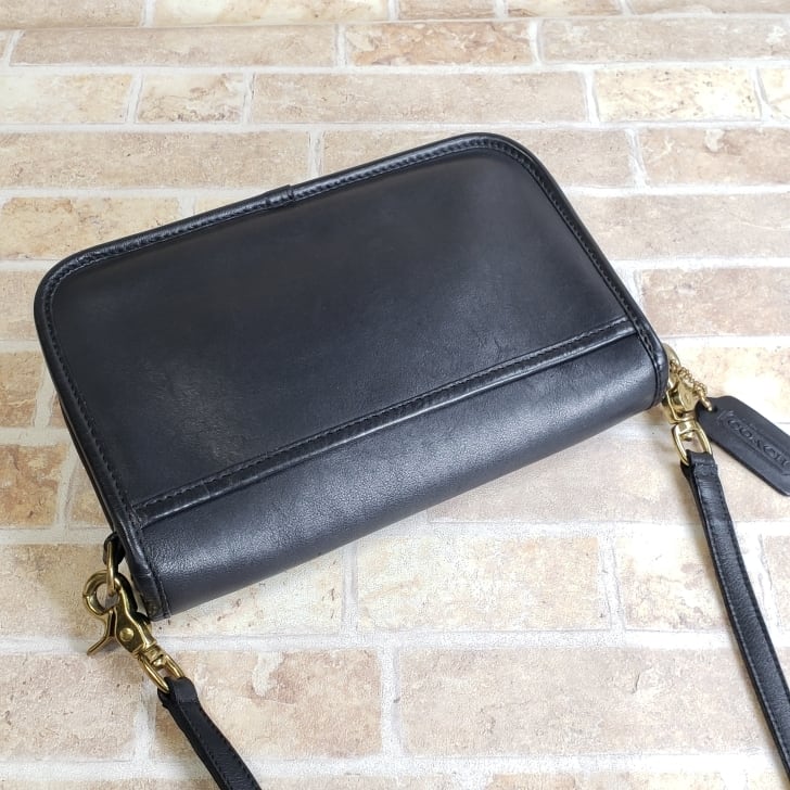 オールドコーチ ☆ USA製 グローブレザー ターンロック ショルダーバッグ クラッチバッグ ブラック 小ぶり