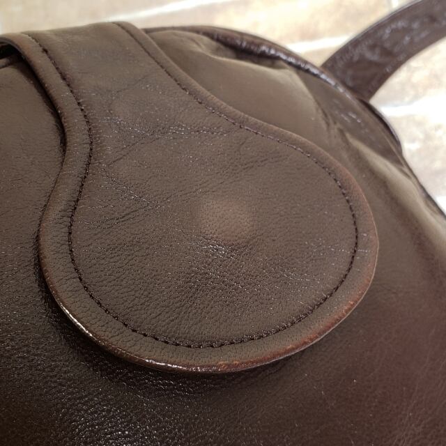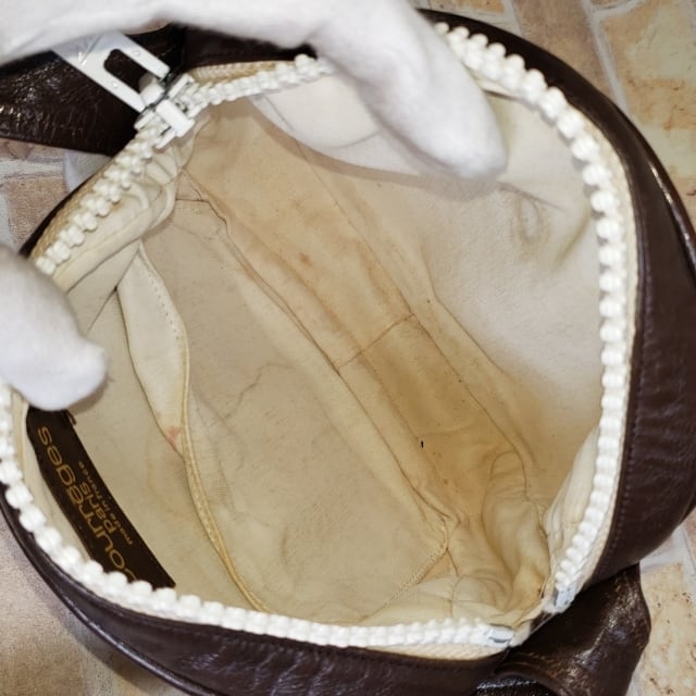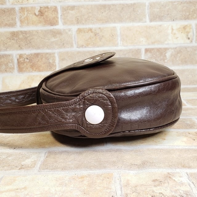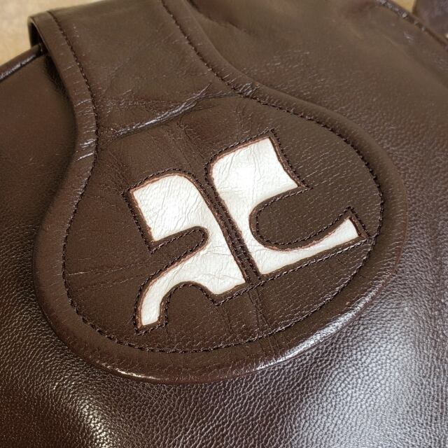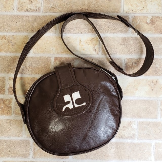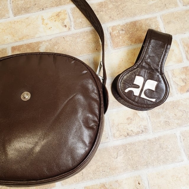 クレージュ courreges ☆ ヴィンテージ レザー ラウンド ロゴ ショルダーバッグ フランス製 ダークブラウン ポシェット