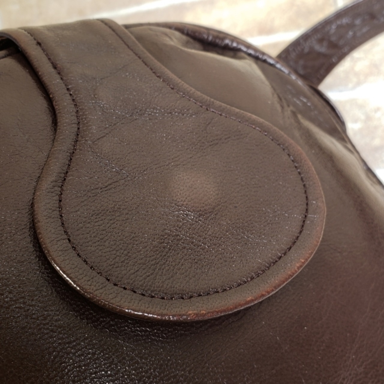 外装レザーのフチ所々にスレ、スレによる退色が多数あります。外装レザー全体に軽いスレ、スレによる退色、色むらがあります。(画像参照)