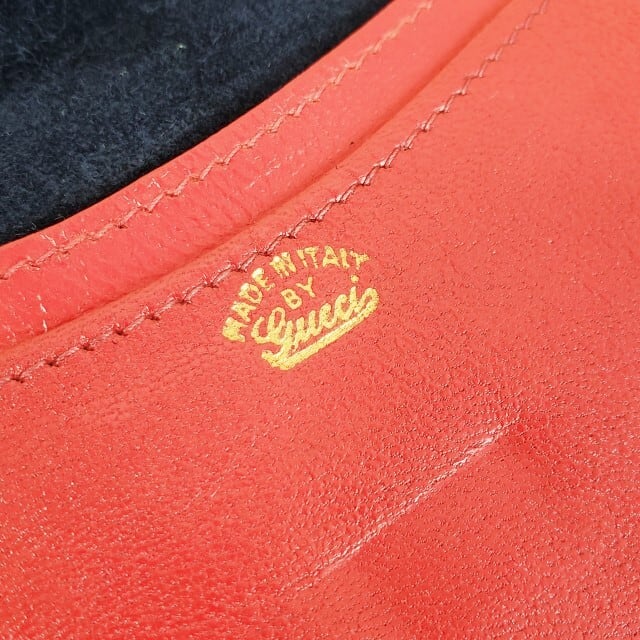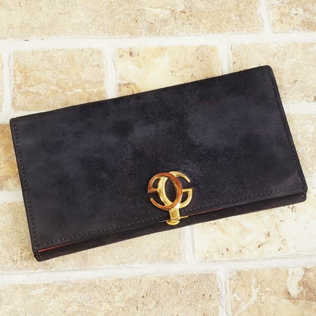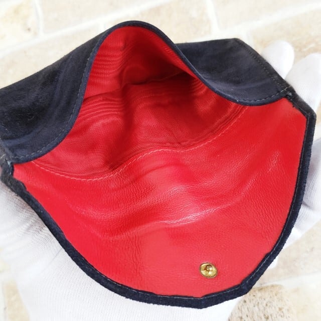 オールドグッチ ☆ スエードレザー 薄マチ 長財布 ダークネイビー イタリア製 裏地レッド グッチ GUCCI ヴィンテージ 財布 スリム