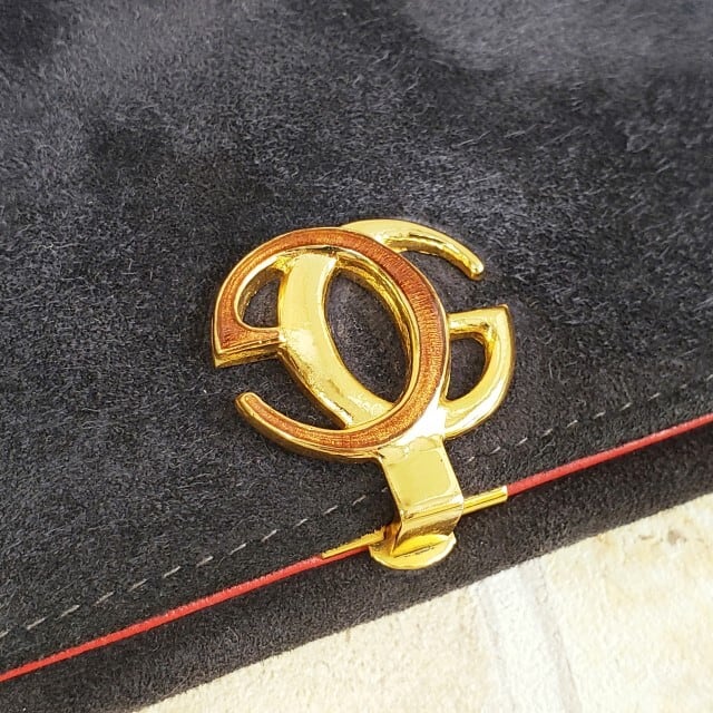 ・ダークネイビーのスエードレザーにチラッと見える裏地のレッドがアクセント!