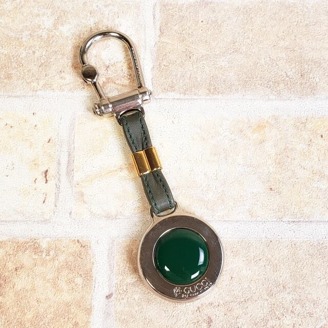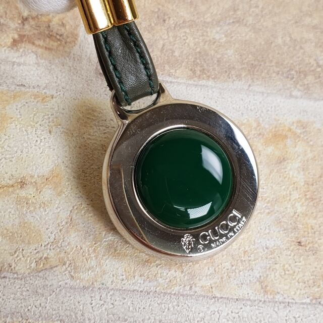 超美品 オールドグッチ ☆ ヴィンテージ キーホルダー イタリア製 グッチ GUCCI グリーン シーリングスタンプデザイン