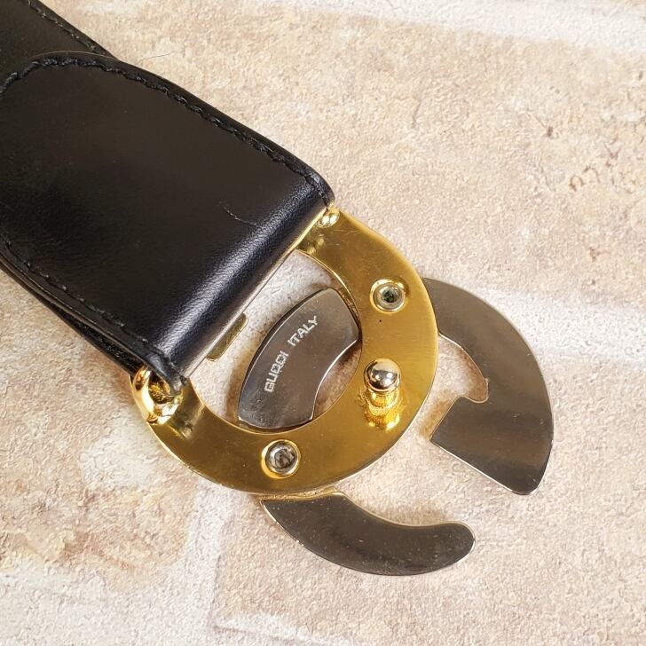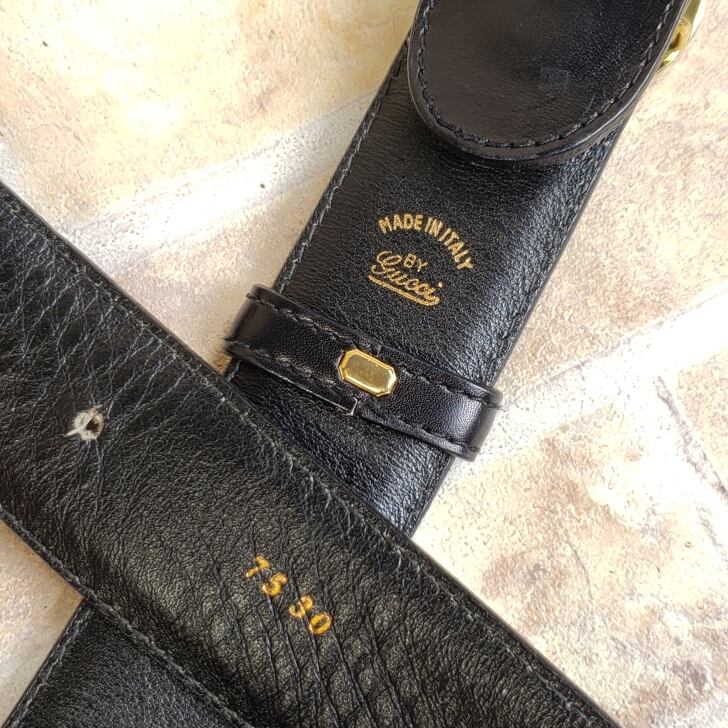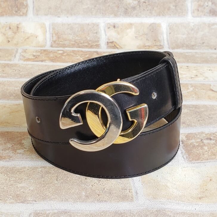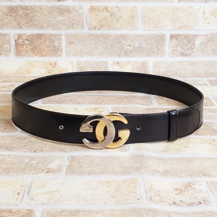 オールドグッチ ☆ ヴィンテージ GG レザー ベルト イタリア製 GUCCI グッチ 黒 ブラック レディース