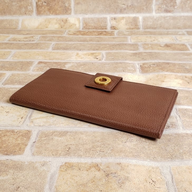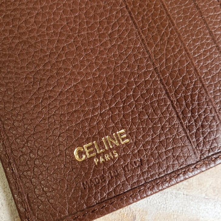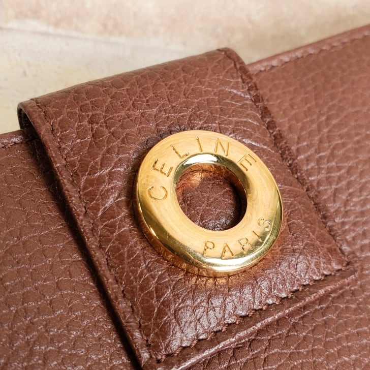 セリーヌ CELINE ☆ ヴィンテージ シュリンクレザー 長財布 財布 ブラウン 薄マチ 小銭室有 イタリア製 オールドセリーヌ