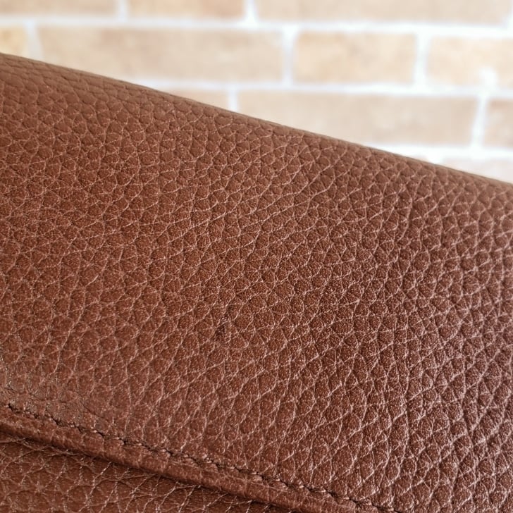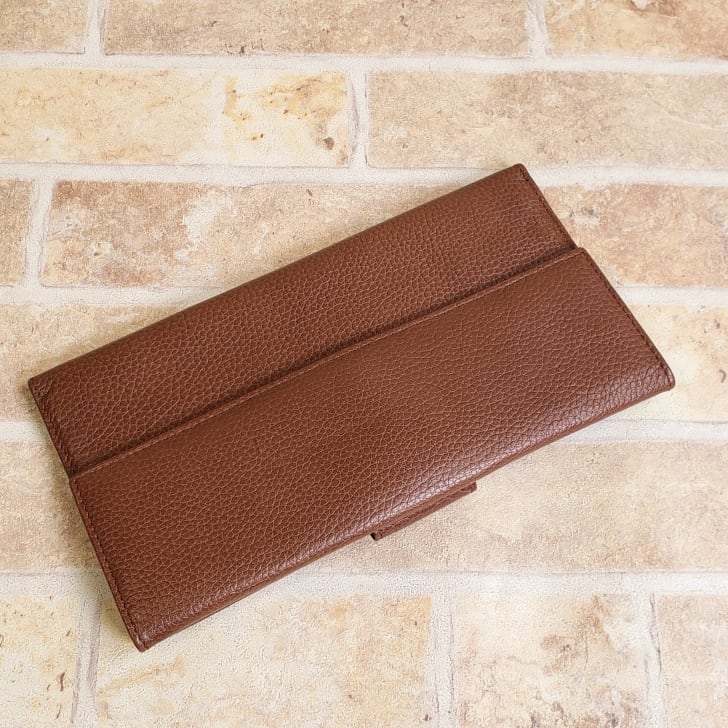 ブラウンシュリンクレザーのマチ無し 長財布です。