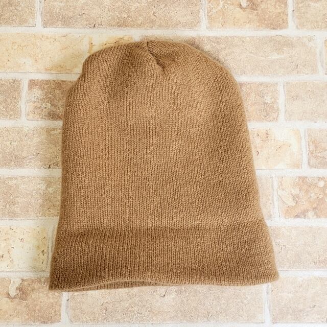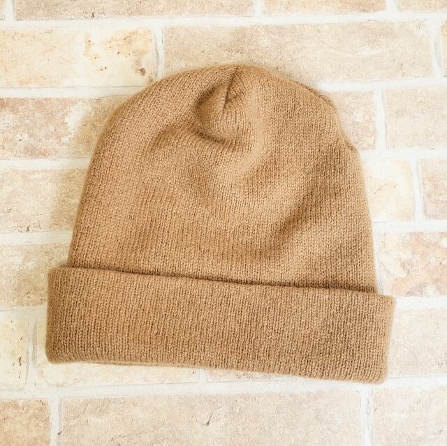 ・ベージュカラーにレッドカラーのロゴ刺繍がアクセントになった ヴィンテージ ウール ニット帽 / ニットキャップ です。