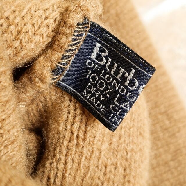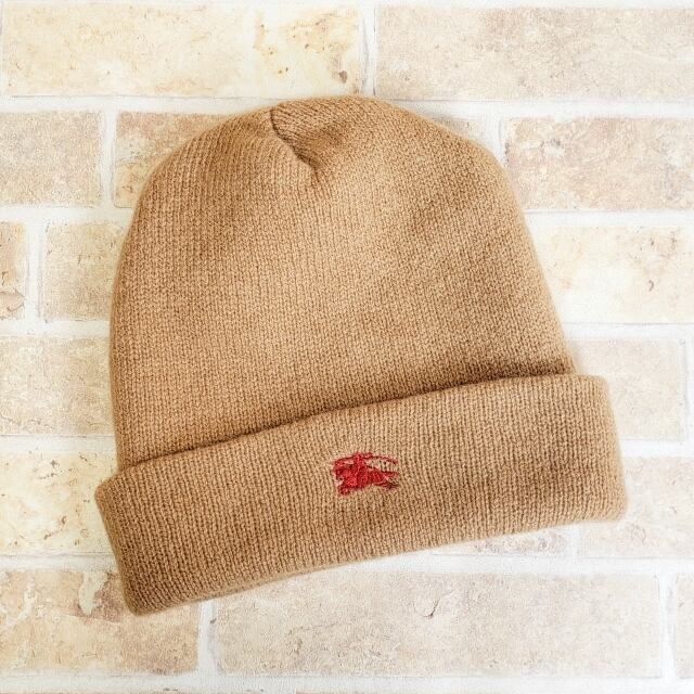 バーバリーズ ☆ ヴィンテージ ウール ロゴ ニット帽 ニットキャップ ベージュ イングランド製 Burberrys