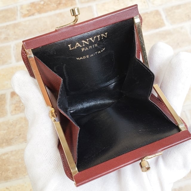 ランバン LANVIN ☆ ヴィンテージ レザー がま口 コインケース 小銭入れ ロゴ イタリア製 ダークブラウン
