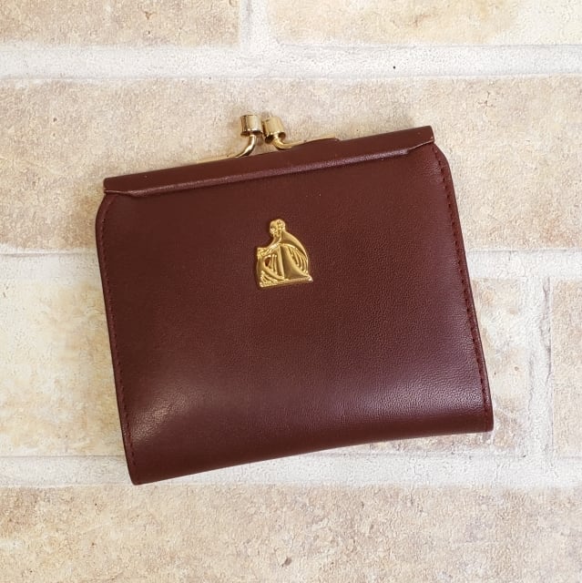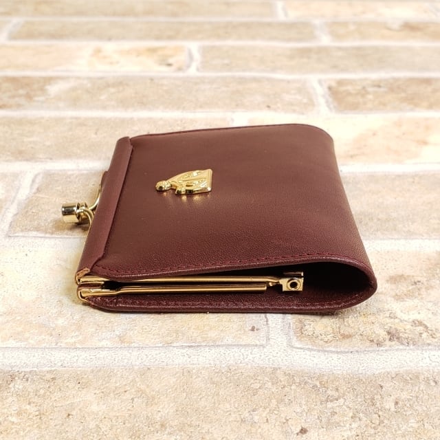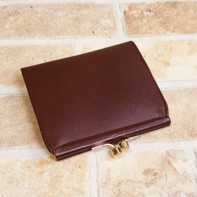 ・フロントの メタルロゴ がポイントになった レザー がま口 コインケース / 小銭入れ です。