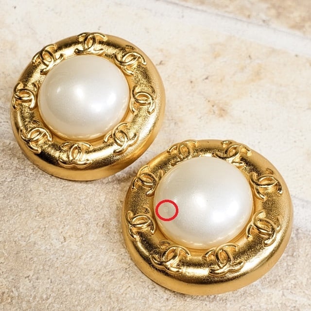 片側のパール部分に約1㎜程度の細かなケズレがあります。(かなり近くで見ないとわからないです。画像参照)