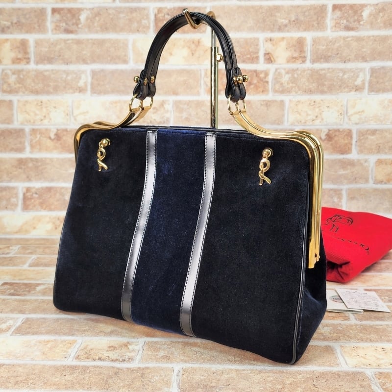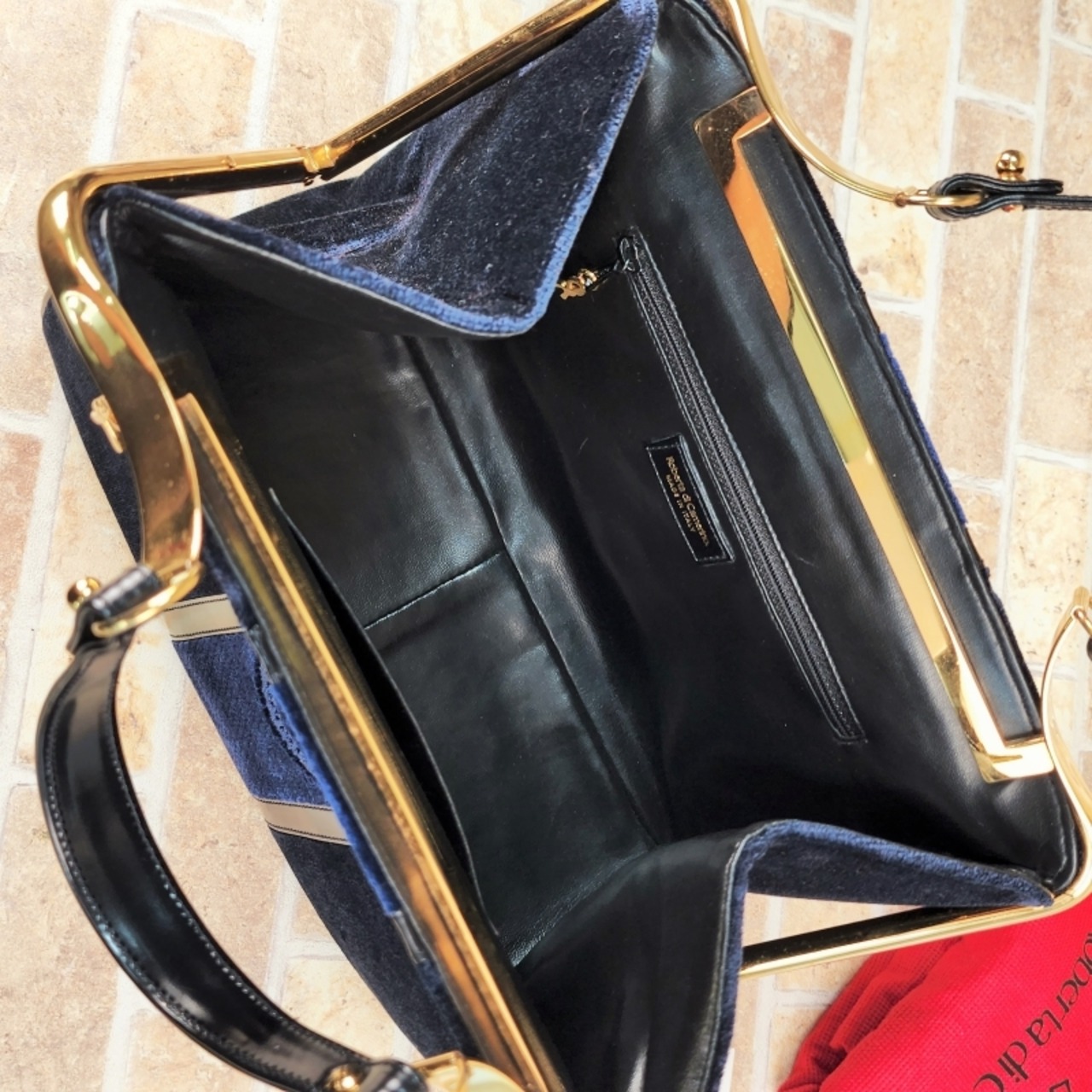 美品 ロベルタディカメリーノ ☆ メリディアーナ カラベラ ベロア ハンドバッグ ネイビー 自立OK ROBERTA DI CAMERINO
