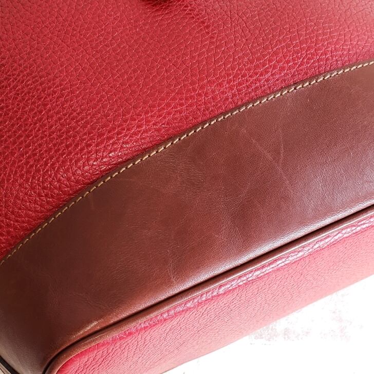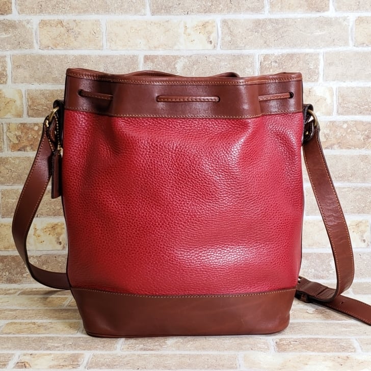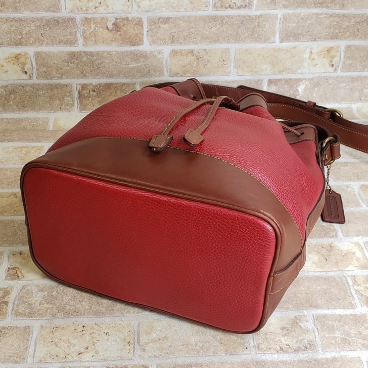 オールドコーチ ☆USA製 巾着 シュリンクレザー ショルダーバッグ レッド ブラウン バイカラー B5OK