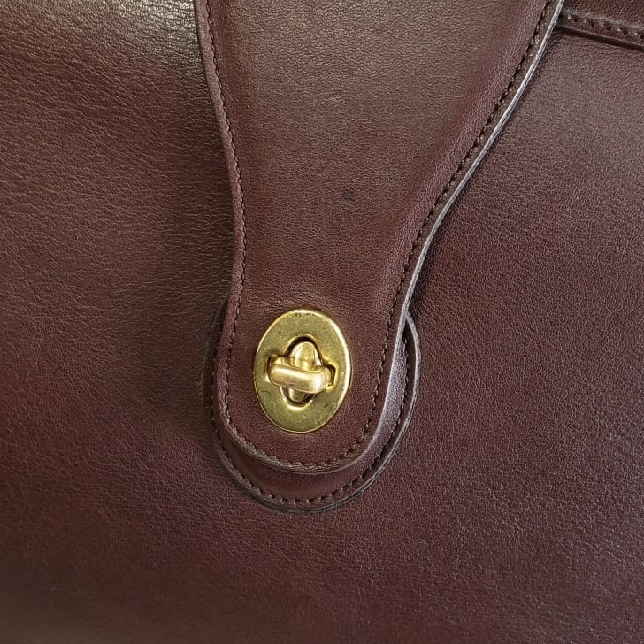 オールドコーチ ☆ USA製 ターンロック レザー トートバッグ ダークブラウン 底鋲付き A4OK ユニセックス