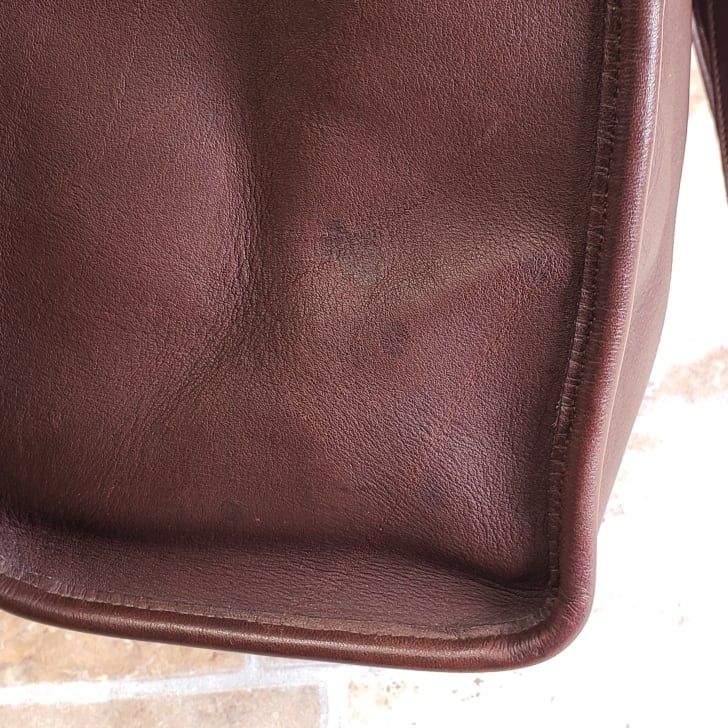 外装レザーの底面に薄い白っぽいスレ汚れが所々にあります。(画像参照)