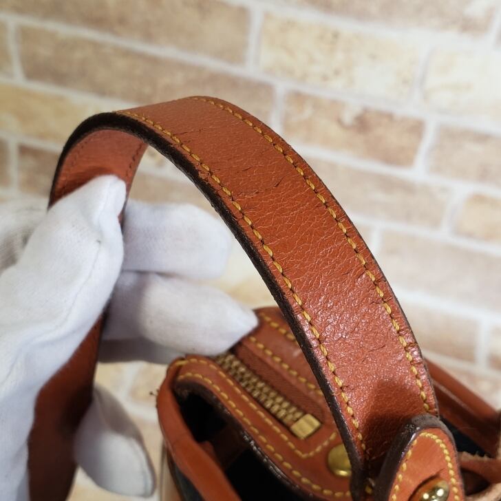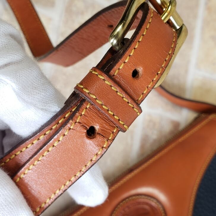 ショルダーベルトのレザー表面に割れ、ひび割れがあります。特に穴回りにひび割れがあります。(画像参照)