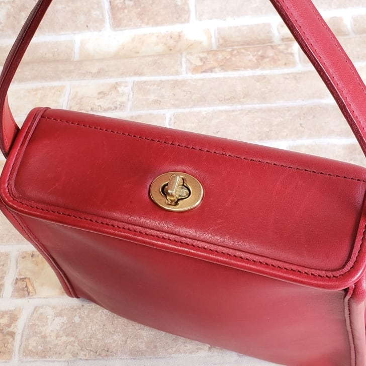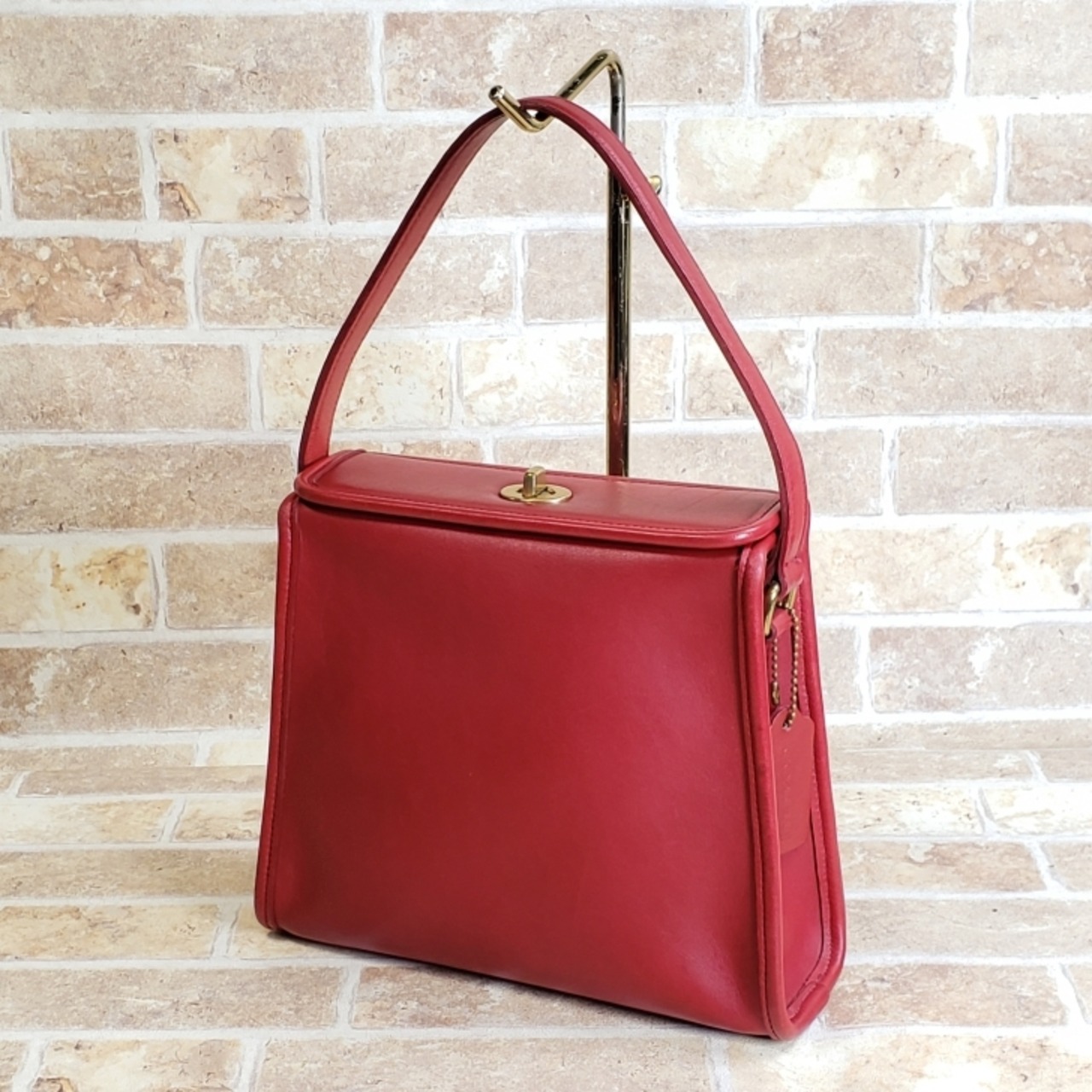 オールドコーチ ☆ USA製 ターンロック レザー ハンドバッグ レッド