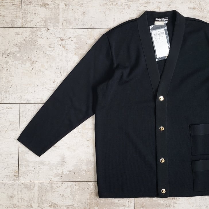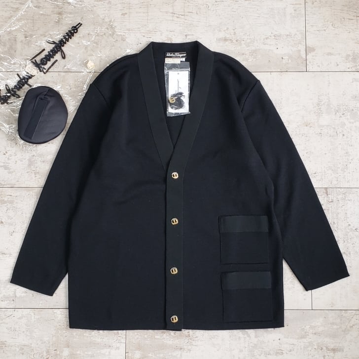 デッドストック サルバトーレ フェラガモ ☆ ウール カーディガン L 黒 ブラック イタリア製 ヴィンテージ 未使用 長袖 Salvatore Ferragamo