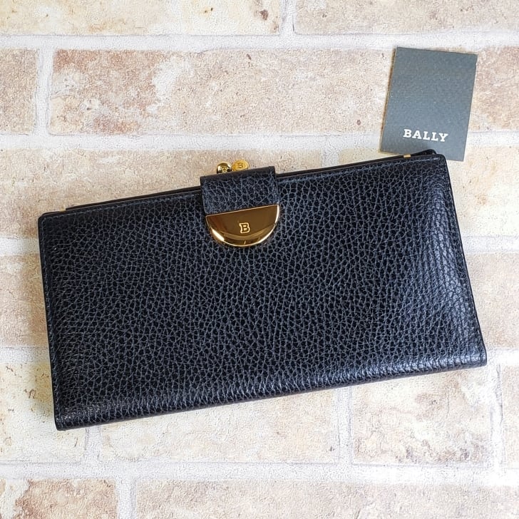 未使用 バリー BALLY ☆ シュリンクレザー がま口 長財布 ブラック イタリア製 カーフレザー 財布 ヴィンテージ デッドストック
